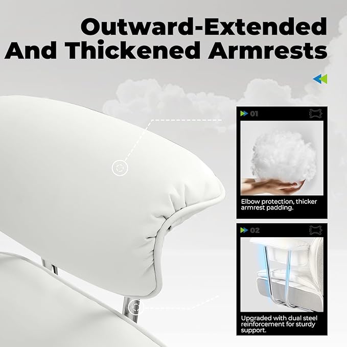 • 【Durable and Stable Construction】Equipped with a BIFMA-certified five-star base that supports up to 300 lbs, and an SGS-3 gas lift certified for over 120,000 lift cycles. Compared to nylon armrests, the metal armrest frame offers superior strength and durability. The wide seat and high backrest accommodate users of various body types.