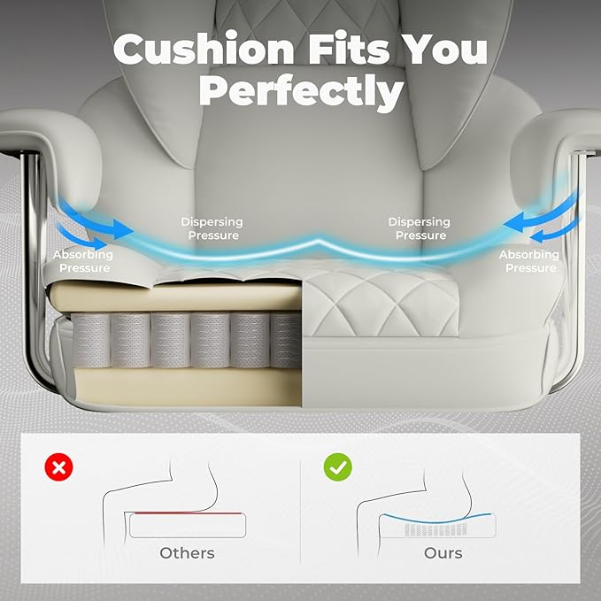 • 【Ergonomic Full-Body Design】Specifically designed for pressure dispersion and body support, the backrest features 3D wrapping lumbar support with dual-layered high-density foam and high-loft fiber, conforming to the curves of your neck, shoulders, and back. The oversized adjustable lumbar pillow provides personalized support, delivering a sofa-like embracing comfort.