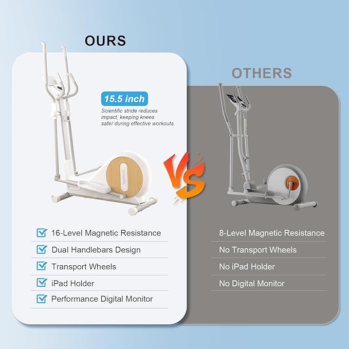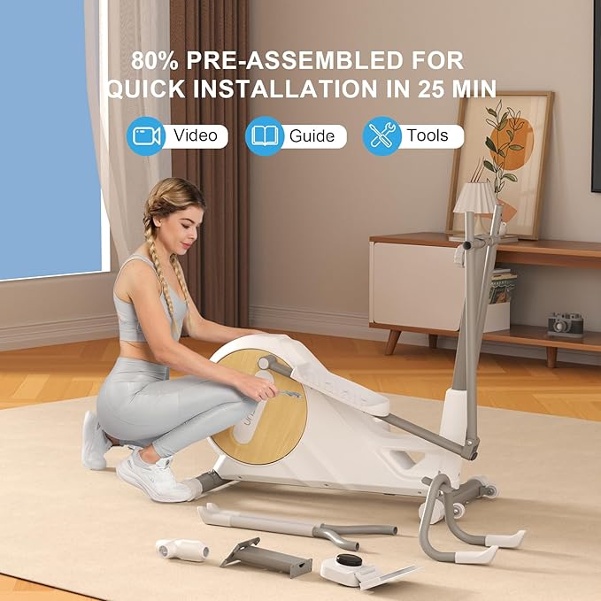 • 10-MINUTE ASSEMBLY&WORRY-FREE SUPPORT:Our Elliptical Exercise Machine for home arrives 85% pre-assembled,so you can set it up in just 15 minutes.We offer a two-year parts replacement&are always here to help—just reach out via Amazon with any questions.