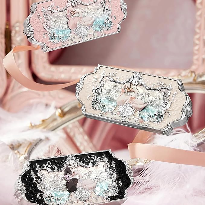 • Portable Travel-Size: Ballet-inspired case with silver detailing,engravings of ballet skirts/slippers,water ripple & oil-painted swan accents + full mirror.Compact,lightweight case for on-the-go glam