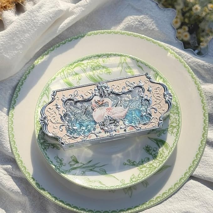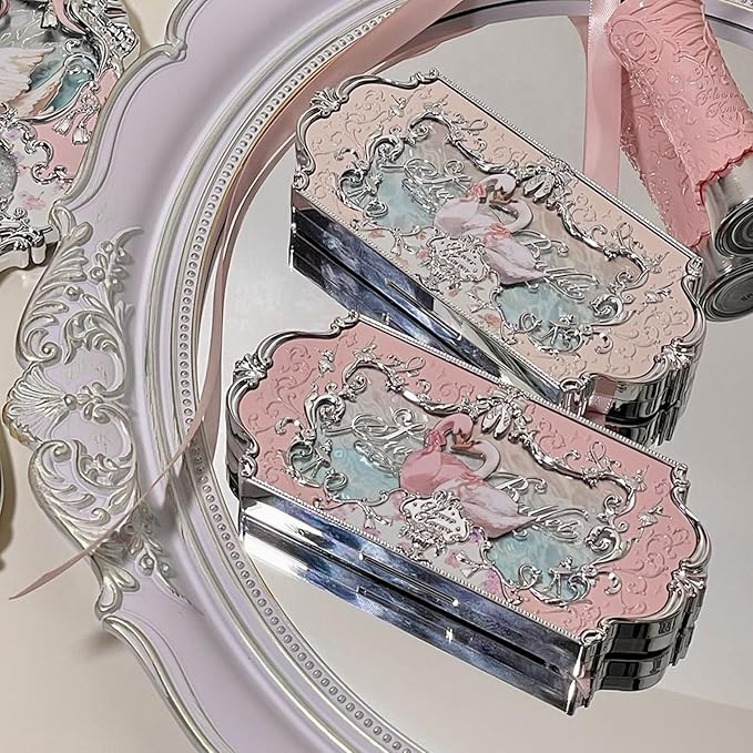 • Portable Travel-Size: Ballet-inspired case with silver detailing,engravings of ballet skirts/slippers,water ripple & oil-painted swan accents + full mirror.Compact,lightweight case for on-the-go glam