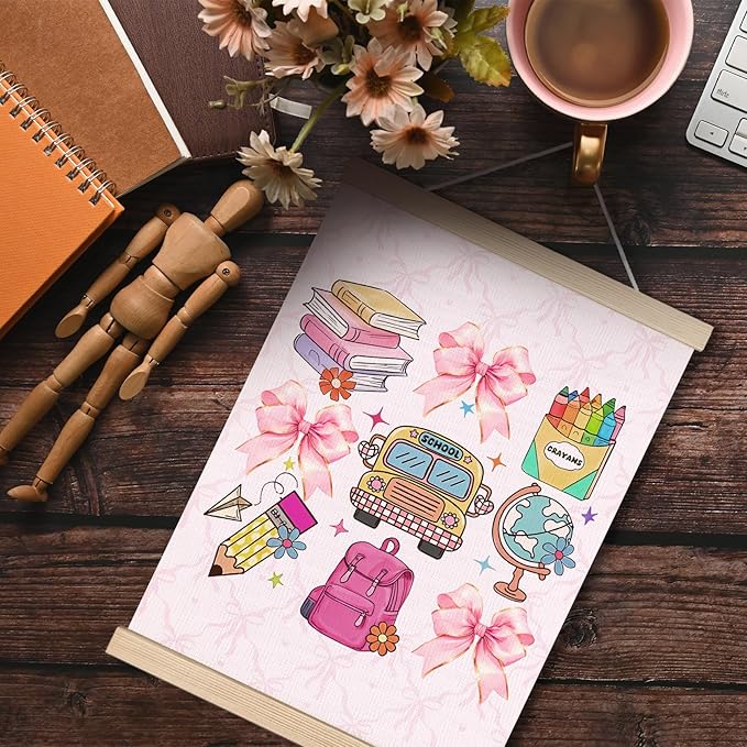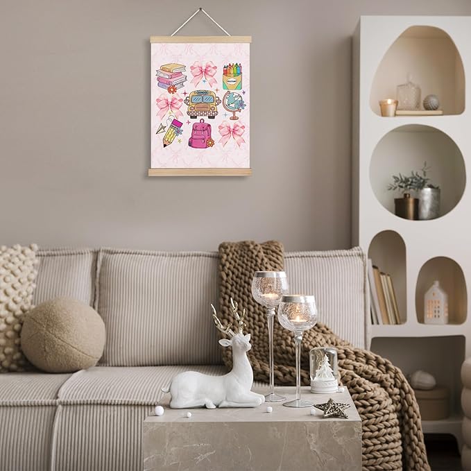 Coquette Pink Bow Back to School Canvas Wall Art Poster, Coquette Preppy Room Decor, Trendy Preppy Aesthetic Wall Decor Prints for Girls Bedroom Classroom Playroom, 12x16 Inches
