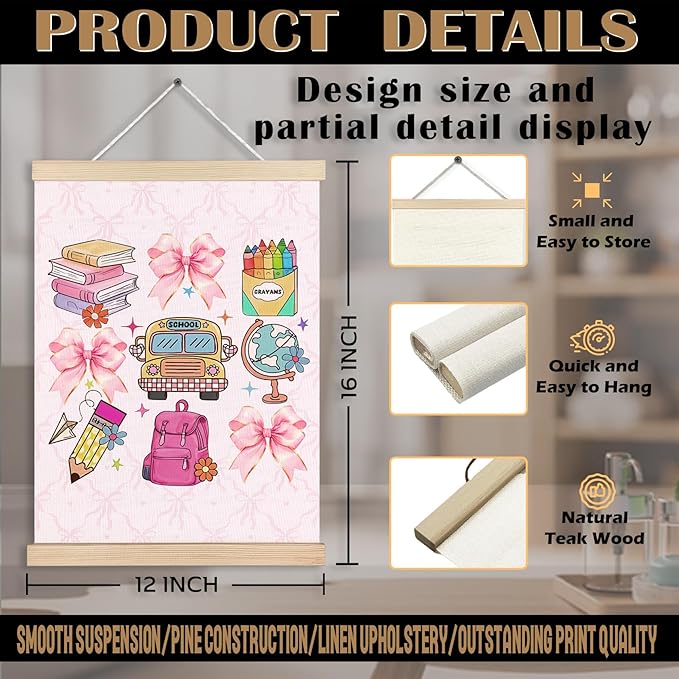 • Dimensions: Sized at 12 x 16 inches, it includes a wooden hanger frame for effortless setup.
