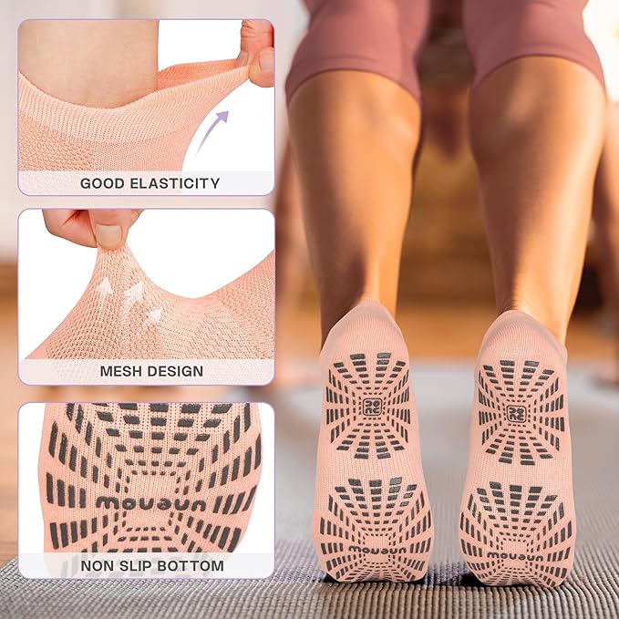 • 【NON-SLIP GRIP DESIGN】Featured non slip dots on the bottom of the socks. Pilates barre socks offer better grip for improved stability & balance so that you can stay safe, avoid injuries and have better control of your body movements, even without a mat. Grips are made of soft and flexible silicone; they will not crack no matter how much you pull and guarantees a firm grip which allows you to push yourself when it really matters.