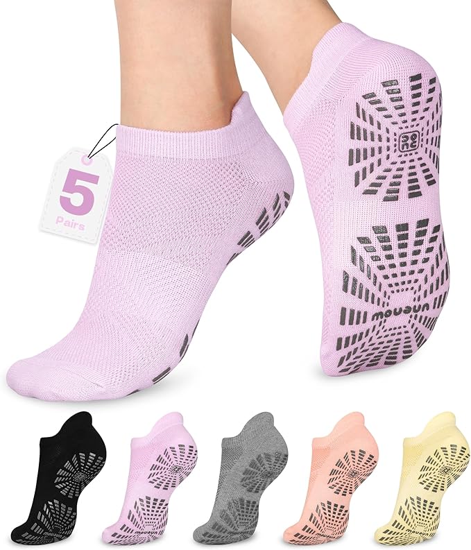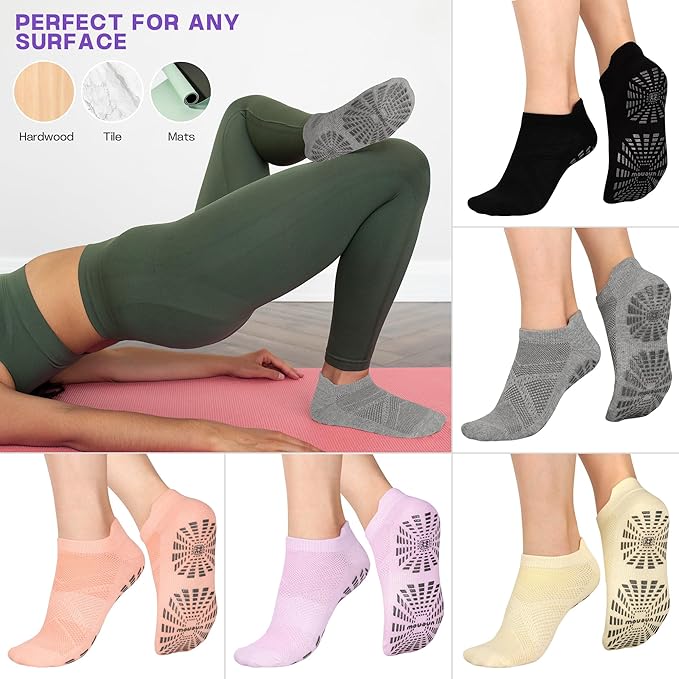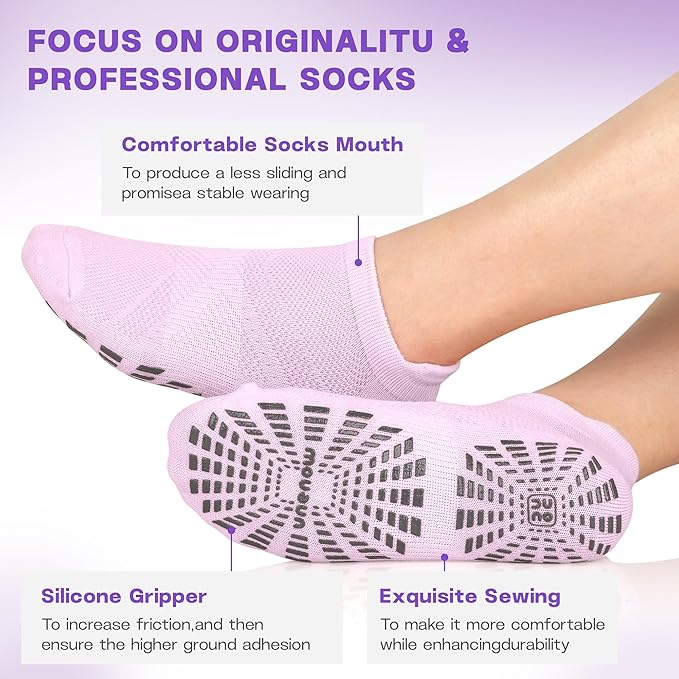 • 【MULTI-USAGE】One Size fits Women’s shoe size 6.5-12. No matter what kind of exercise you do, these adult grippy socks for women are perfect for Yoga, Pilates, Bikram, Barre, Ballet, Trampoline, Travel, Studio, Gym, Dance and more. Also ideal for Hospital, Rehab, Physiotherapy, Elderly Care, Pregnancy and more to prevent falls from stairs, or the floor. If you're looking for these socks, you can stop the search and buy our ankle socks, we are confident that you will love these non slip socks.