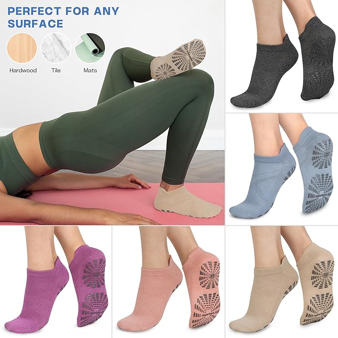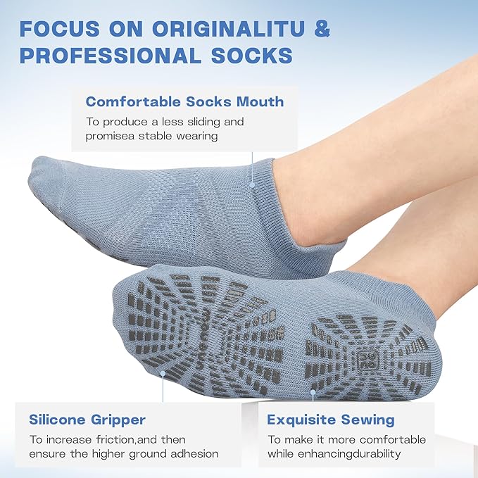 • 【MULTI-USAGE】One Size fits Women’s shoe size 6.5-12. No matter what kind of exercise you do, these adult grippy socks for women are perfect for Yoga, Pilates, Bikram, Barre, Ballet, Trampoline, Travel, Studio, Gym, Dance and more. Also ideal for Hospital, Rehab, Physiotherapy, Elderly Care, Pregnancy and more to prevent falls from stairs, or the floor. If you're looking for these socks, you can stop the search and buy our ankle socks, we are confident that you will love these non slip socks.