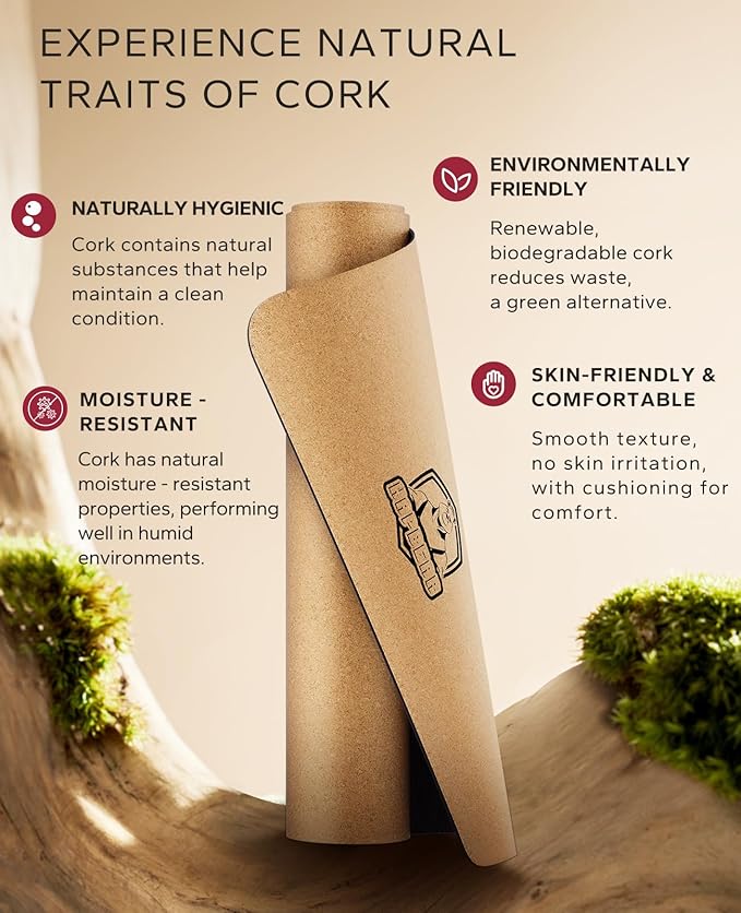 • Non-Slip Cork & TPE Workout Mat:The cork top offers natural grip that strengthens with movement, while the TPE base stays anchored to floors—no slipping during yoga, HIIT, or exercises. Stable for dynamic poses or intense routines, this non-slip large exercise mat keeps you secure and focused