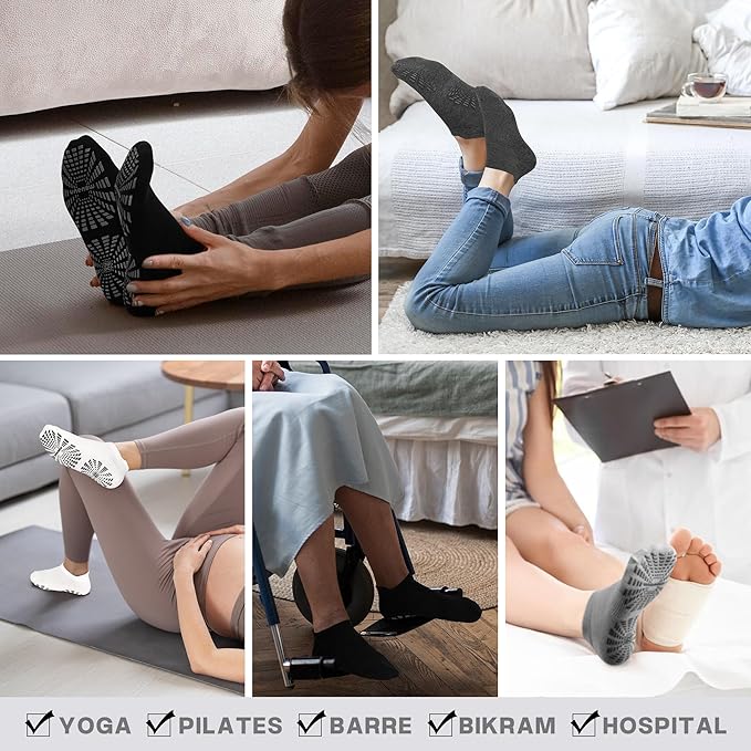 • 【MULTI-USAGE】One Size fits Women’s shoe size 6.5-12. No matter what kind of exercise you do, these adult grippy socks for women are perfect for Yoga, Pilates, Bikram, Barre, Ballet, Trampoline, Travel, Studio, Gym, Dance and more. Also ideal for Hospital, Rehab, Physiotherapy, Elderly Care, Pregnancy and more to prevent falls from stairs, or the floor. If you're looking for these socks, you can stop the search and buy our ankle socks, we are confident that you will love these non slip socks.