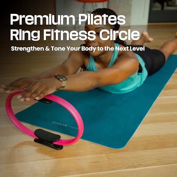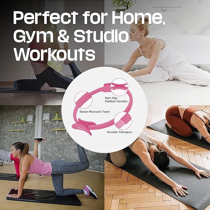 Premium Pilates Ring Fitness Circle - Lightweight Durable Foam Padded Handles, Flexible Resistance Exercise Equipment for Toning Arms, Thighs, Legs & Core