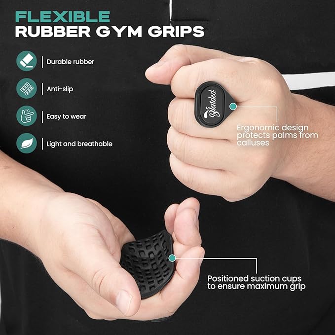 • 【Durable Rubber】Made with tear-resistant, flexible rubber, these workout grips withstand heavy pulls and shrugs. One-size-fits-all design suits men and women—no adjustments needed, just secure and train!