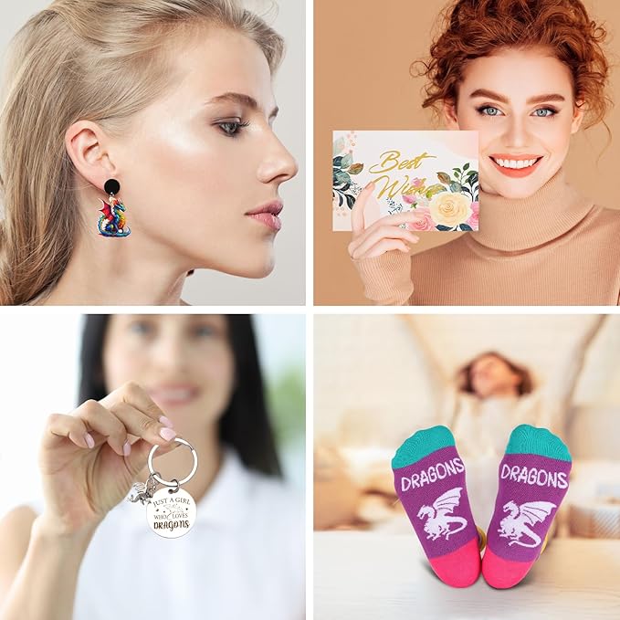 • Exquisite and delicate gift set:the funny dragons gifts contains 1 can glass, 1 pair of full length lounge socks, 1 cosmetic bag with "Just a Girl Who Loves Dragons”, 1 keychain,1 pair of earrings and 1 gift box, which is a practical and thoughtful set that can satisfy your various demands, to express your love and gratitude to dragons lovers