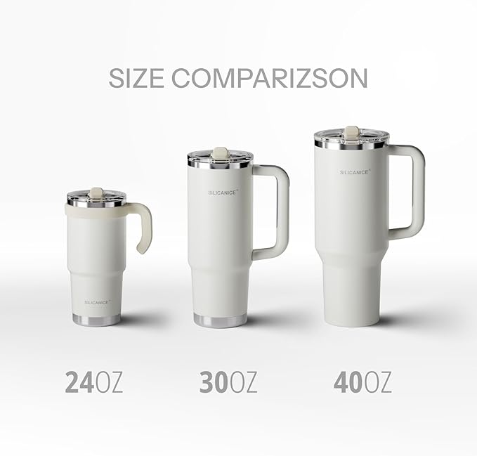 • PERFECT FIT, EVERY TIME: With a NO-slip handle and a narrow base that fits most car cup holders,Narrow base fits 90% vehicle holders; Carry Handle Water Bottle with Handle & Straw prevents slips during runs or drives. 100% leak-proof design completely solves the problem of fitting some car cup holders the SILICANICE tumbler with handle is as easy to carry as it is to store. Ideal for your commute, gym bag, or next road trip, this insulated tumblers is always right by your side.