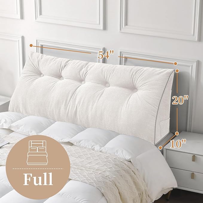 Sasttie Headboard Pillow Full, Wedge Pillow Headboard for Sitting Up in Bed, Back-Rest Support Triangular Cushion for Reading - Features Removable Washable Cover, White