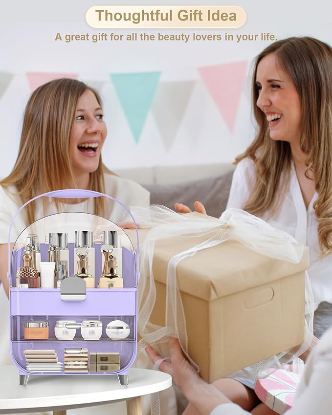 Makeup Organizer, Skincare Holder Bathroom Counter Organizer, Storage Box Cosmetic Display Cases, Teen Girl Gifts Trendy Stuff Make up Organizers for Vanity, Dresser, Countertop (purple)