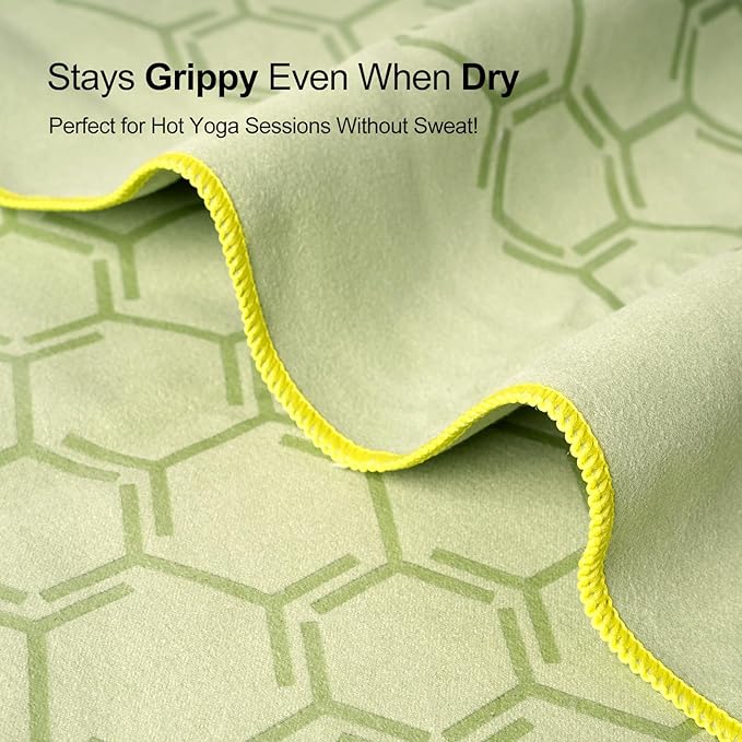 • NON-SLIP & SKID-LESS: The yoga towel, with its honeycomb design, ensures a slip-free practice. Made of soft microfiber, it features a double-sided embedded silicone pattern that grips the mat or floor, providing a smooth, non-slip surface without bumps. This textured surface maintains traction even when wet, allowing you to focus on your practice.