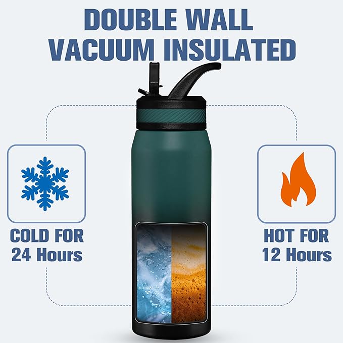 • INSULATED WATER BOTTLE: OLDLEY metal water bottle insulation maintains drinks cold for up to 24 hours and hot for up to 12 hours. Vacuum insulation ensures superior temperature retention, keeping drinks cold for hours, ideal for outdoor events or traveling.