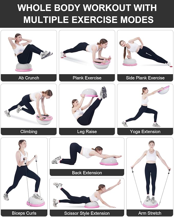 • Multifunctional Balance Exercise Ball. Design for home gym full body workout,ideal for cardio training,yoga,pilates,core strength workout,balance training,able to improve mobility and workout posture,build muscle,,body recovery and loss extra weight with high efficient .Widely use for beginners, strength trainers, intermediates, and advanced athletes.