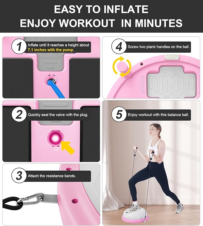 • Easy To Install And Use. Including with a pump and clear user instruction, easy to inflate this balance ball in seconds and start to enjoy workout .Lightweight design ,portable to carry anywhere as you want .