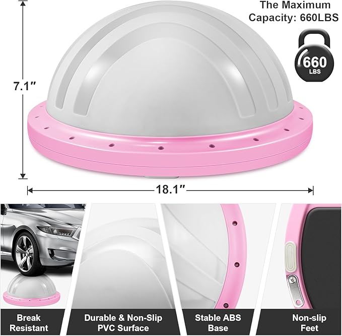 • Patented Unique Plank Trainer Ball. Design with innovative removable plank handle and comfortable elbow support pad, combining the exercise half ball and plank board trainer into one machine ,satisfy for your different workout needs. Perfect to workout your whole body at home and office, in the gym, or in yoga room,.etc.