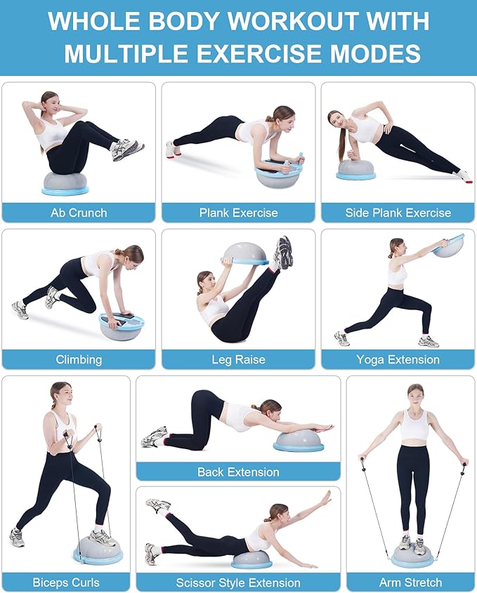 • Multifunctional Balance Exercise Ball. Design for home gym full body workout,ideal for cardio training,yoga,pilates,core strength workout,balance training,able to improve mobility and workout posture,build muscle,,body recovery and loss extra weight with high efficient .Widely use for beginners, strength trainers, intermediates, and advanced athletes.