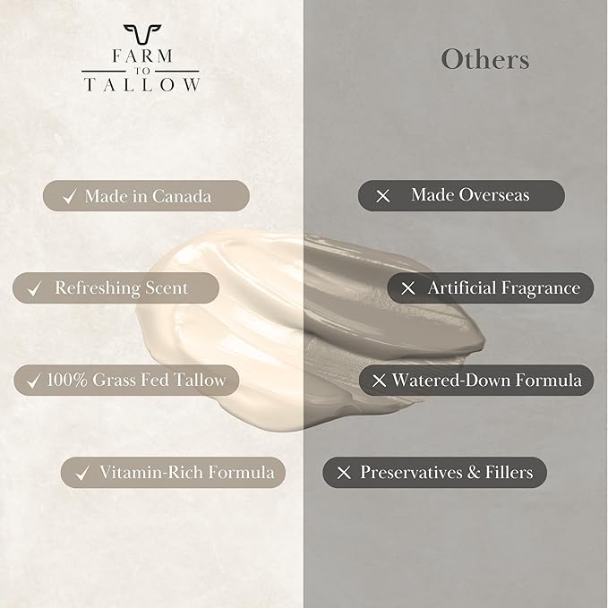 • Supports Ethical and Regenerative Farming - We guarantee uncompromising quality, ensuring you get the best. Our product is made from 100% grass-fed beef tallow. Our cattle thrive in a stress-free, natural environment, ensuring ethical care and responsible farming. Rich in vitamins and deeply moisturizing, our beef tallow skin care products provide a natural solution for soft and healthy skin.