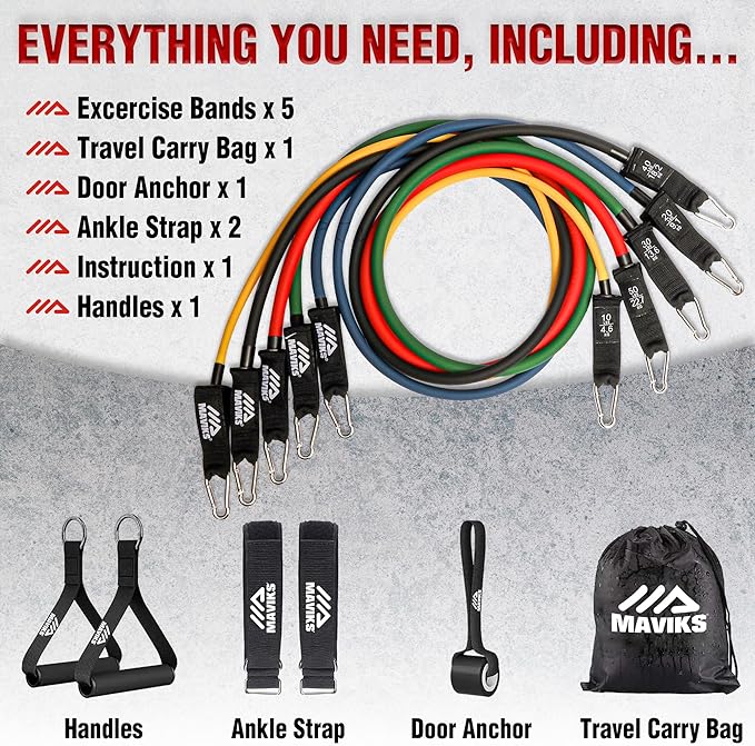 • 𝐕𝐄𝐑𝐒𝐀𝐓𝐈𝐋𝐄 𝐑𝐄𝐒𝐈𝐒𝐓𝐀𝐍𝐂𝐄 𝐋𝐄𝐕𝐄𝐋𝐒: Our resistance band set of five color-coded (Green: X-Light, Blue: Light, Yellow: Medium, Red: Heavy, Black: X-Heavy) caters to all fitness levels. Ideal for beginners and pros, they adapt to various workout intensities for a personalized fitness experience.