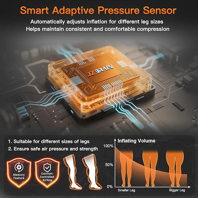 • 【Smart Adaptive Pressure Sensor – Automatically Adjusts to Your Leg Size】 Built-in sensors adjust pressure based on your leg circumference to keep each session steady, balanced, and comfortable. Prevents over-tightening and ensures a personalized fit for different leg shapes and users.
