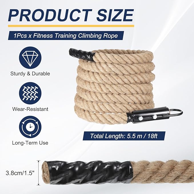 • Length: 5.5 m / 18ft; Diameter: 3.8cm / 1.5 inch; Material: Jute; Color: Yellow; In the package of: 1Pcs x Fitness Training Climbing Rope