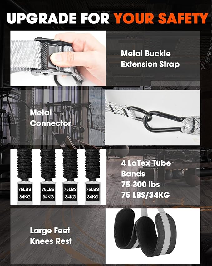 • ✅ 4-Tube Resistance System for All Levels- Engineered with four detachable latex tubes, each offering 75lbs of resistance, this pull-up assist band adapts to your evolving strength goals. Ideal for beginners needing more help or pros looking to squeeze in more reps after fatigue. Unlock your full potential with the versatility of these assisted pull up bands.