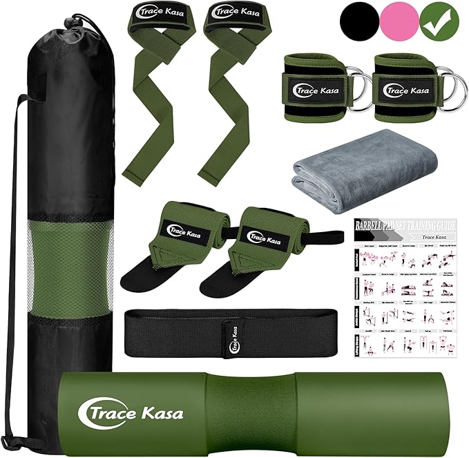 • Barbell Squat Pad Set: Includes barbell pad with carry bag, two gym ankle straps, strength fabric hip resistance band, two weightlifting straps and wrist wraps, workout microfiber towel, gym accessories for women men, give you professional weight support