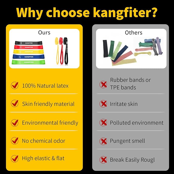 • 【100% Natural Latex】: KANGFITER assistance bands are made of 100% natural latex, non-toxic, no odor and non-slip. Resistance bands are safe and durable, anti-roll and anti-tear, and can maintain high elasticity even after long-term exercise. You can use it with peace of mind and focus better on your training.