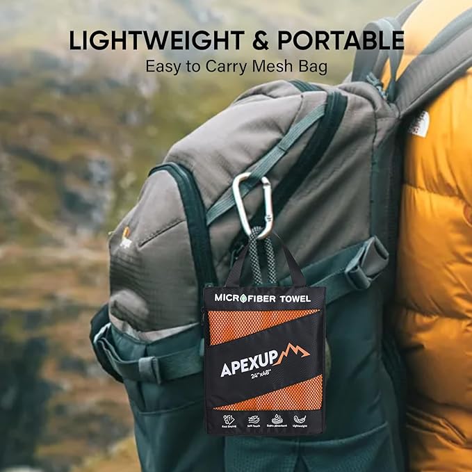 • Lightweight and Soft: APEXUP Gym towel is made from high quality microfiber materials for a gentle feel on your skin; Whether you're drying off after a shower or relaxing at the beach, its smooth and soft microfiber texture provides exceptional comfort; Moreover, its lightweight and compact design allows for easy storage in backpacks or suitcases