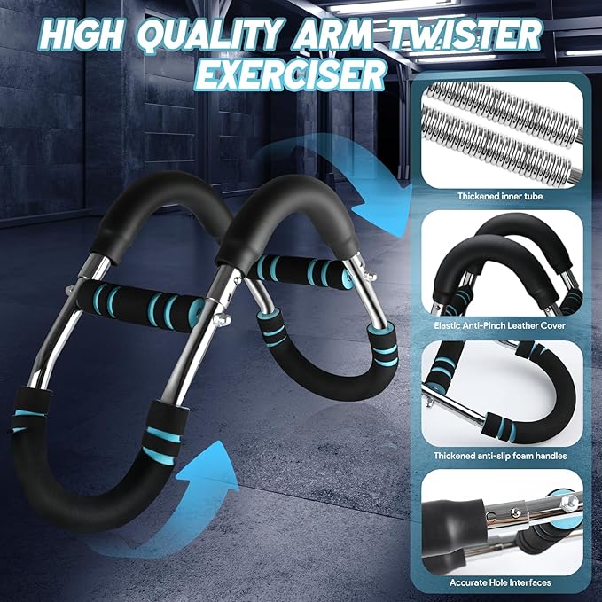 • 【Portable & Easy to Use Anywhere】Achieve your fitness goals anytime, anywhere! This detachable twister arm exerciser is easy to store and carry. Whether you're at home, in the office, at the gym, or traveling, you can maintain your fitness regimen without hassle. It comes with an easy-to-follow instruction manual and workout poster, guiding you through proper exercise techniques for the best results.
