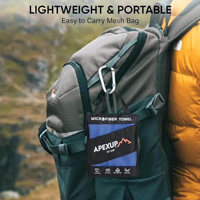 • Lightweight and Soft: APEXUP Gym towel is made from high quality microfiber materials for a gentle feel on your skin; Whether you're drying off after a shower or relaxing at the beach, its smooth and soft microfiber texture provides exceptional comfort; Moreover, its lightweight and compact design allows for easy storage in backpacks or suitcases