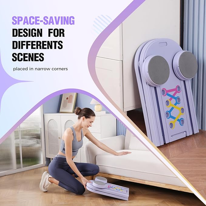 • 【Space-saving and Portable Design】 Folds in seconds and stores under the bed/closet. Lightweight and sturdy frame (300 lbs load capacity) with non-slip handles. Can be used at home, in the gym, outdoors or during travel. Carrying bag included - you can get fit wherever you are!