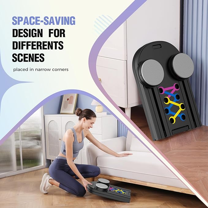 • 【Space-saving and Portable Design】 Folds in seconds and stores under the bed/closet. Lightweight and sturdy frame (300 lbs load capacity) with non-slip handles. Can be used at home, in the gym, outdoors or during travel. Carrying bag included - you can get fit wherever you are!