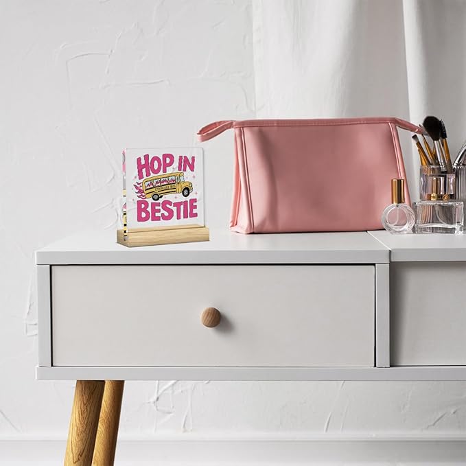 Mental Health Decor, Motivational Gifts for Women Men, Funny Anxiety Inspirational Acrylic sign with Wooden office Accessories Bedroom Dorm Apartment Decoration-Struggle Bus Hop In Bestie