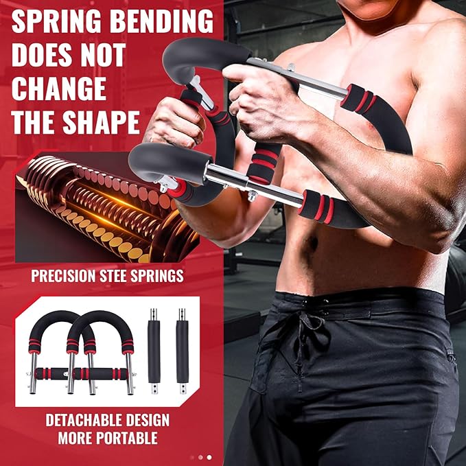 • ④ PORTABLE Chest Workout Equipment:Suitable for both beginners and professional athletes, the Arm Exercise Equipment facilitates efficient and portable strength training. Its detachable design makes it space-saving and versatile, allowing users to maintain muscle tone whether they are outdoors, traveling, in the office, or at home. Regular use—10 minutes per session, four times a week—yields perfectly toned muscles.