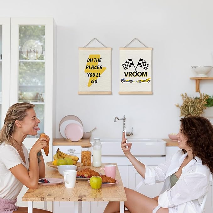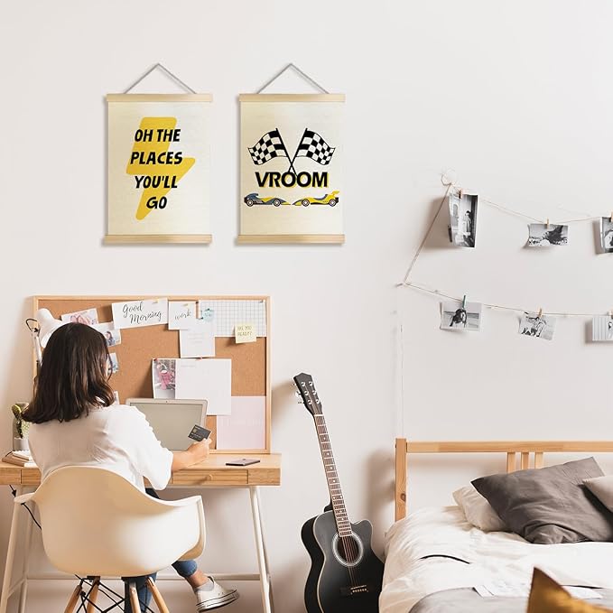 JINYO Race Car Wall Decor, Black and White Checkered Racing Flag Quote Wall Art Poster, Race Car Room Decor, Racing Cars Posters for Kids Boys Room Bedroom Playroom, 12x16 Inches Set of 2
