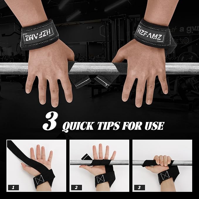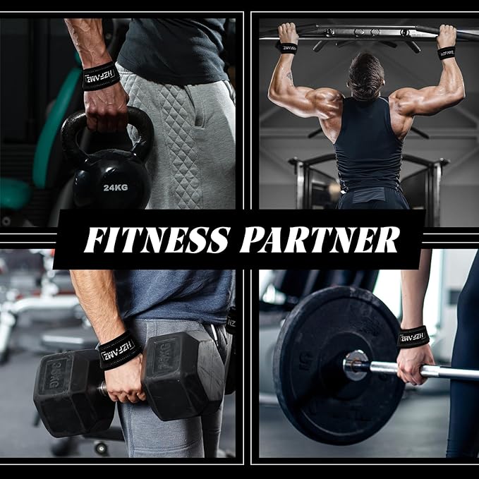 • Provide Grip Support to Help You Lift More Weight: HZFAMZ weight lifting straps increase friction when you grip, which reduces the likelihood of your grip weakening due to sweating. These strong, non-slip gym straps can reduce wrist fatigue, increase grip strength, improve training effectiveness, and help you break personal records
