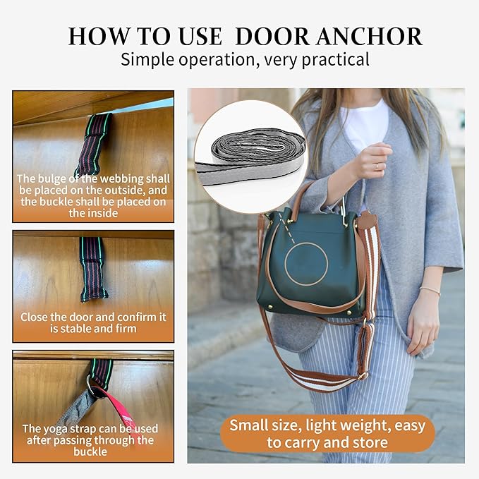 • 【EQUIPPED WITH DOOR STOP&PORTABLE】It has a wide range of use scenarios, and is very suitable for going out, working in the studio or at home. We are equipped with a door anchor, so we can easily use our yoga straps anytime, anywhere. Especially, it's more efficient to use it after warm-up, exercise and exercise; Perfect for dancers and athletes, it can also be used for physical therapy, Pilates and yoga.