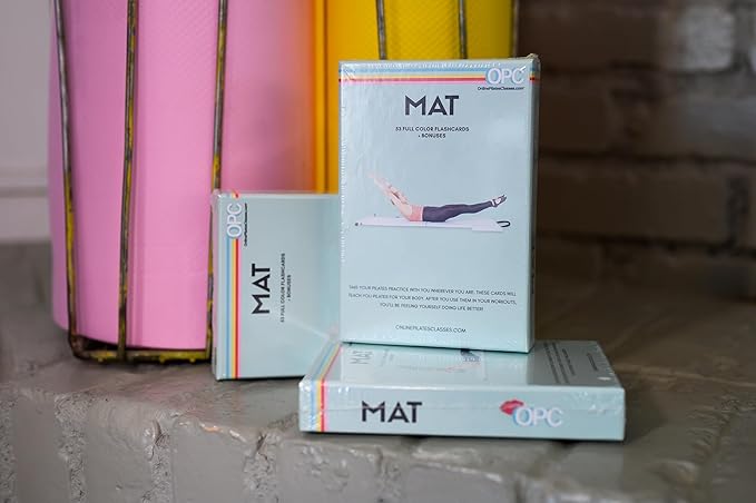 OnlinePilatesClasses Mat Pilates Workout Planner with Video Tutorials, 59 All-Level Exercise Flash Cards Ideal for Yoga, Abs, Core Workouts and Fitness Enthusiasts, No Equipment Needed