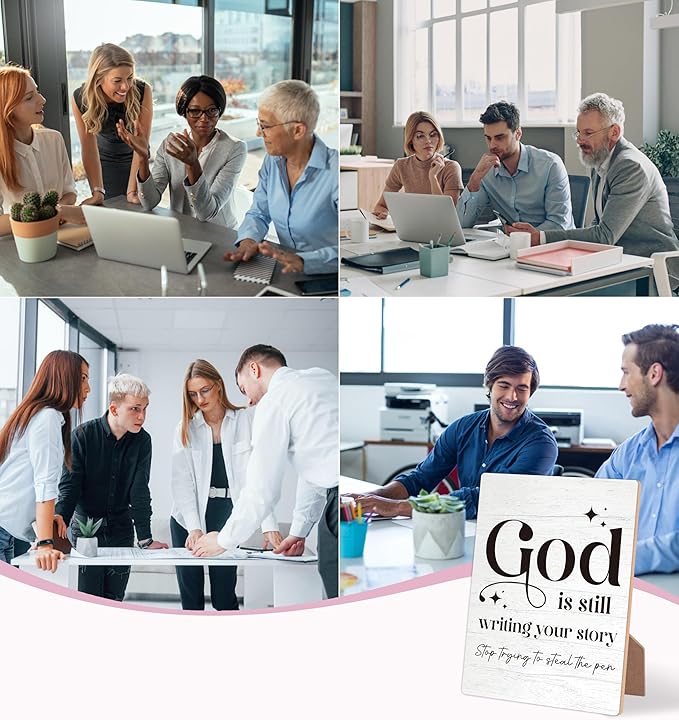 God Is Still Writing Your Story Wooden Sign with Stand, Bible Verses Decor, Christian Home Decor, Desk Signs for Office, Christian Gifts, Coworker Gifts, Encouragement Gifts for Women Men Friend,9