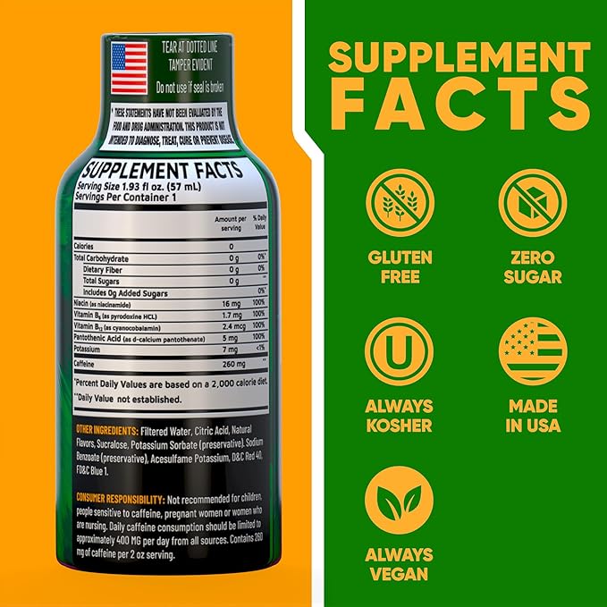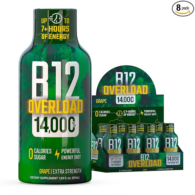 B12 Overload Extra Strength Energy Shot – Grape – 260mg Caffeine, 14000% B12, Electrolytes – Energy & Vitality Support – Zero Sugar No Calories – Vegan, Kosher, Gluten-Free – 1.93 fl oz, 8-Pack
