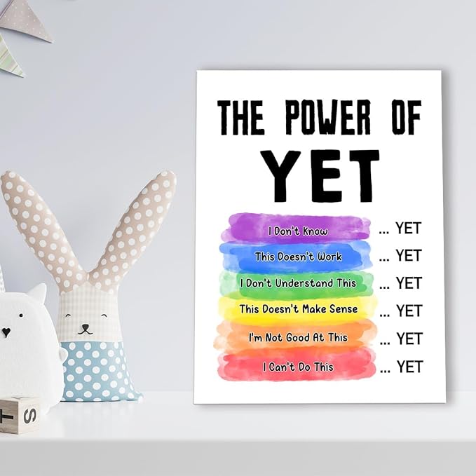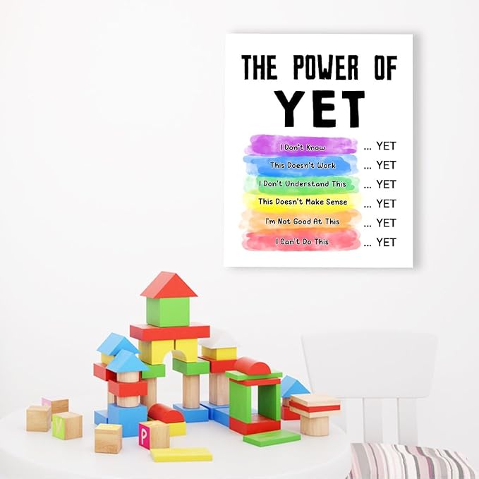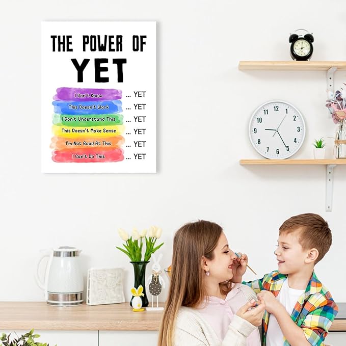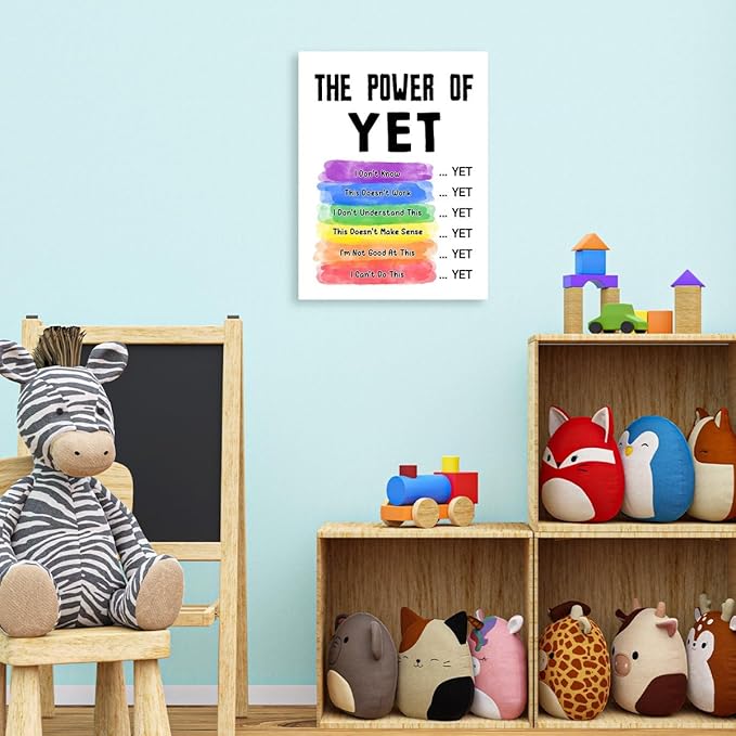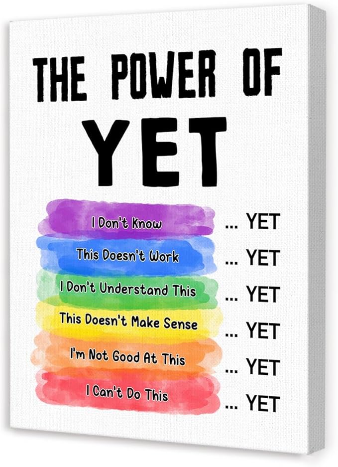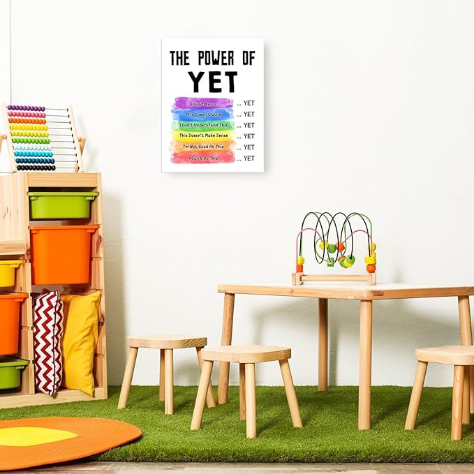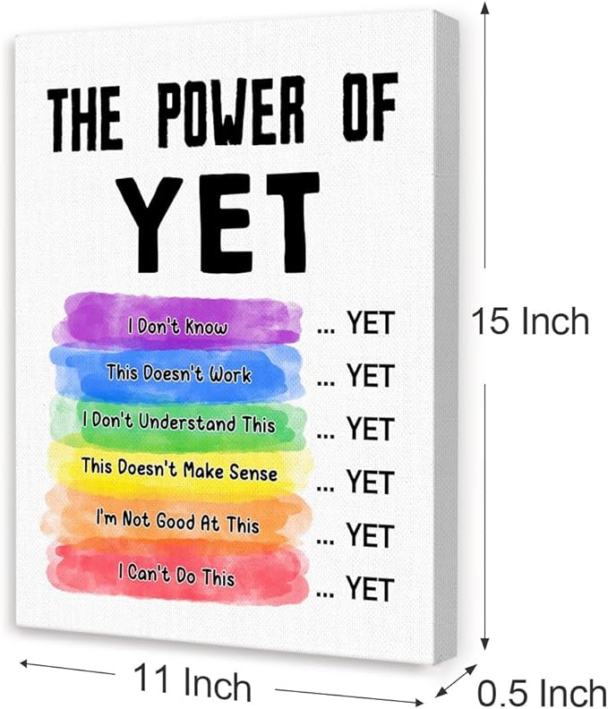 Mental Health Wall Decor,The Power of Yet Wall Art,Therapy Office Wall Decor,Inspirational Canvas Wall Art for Classroom Psychologist Office Homeschool