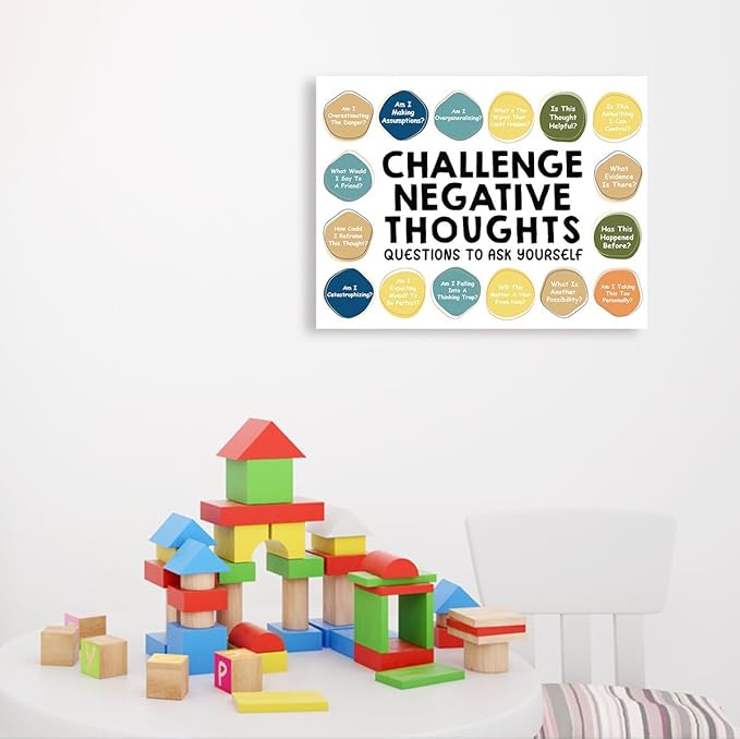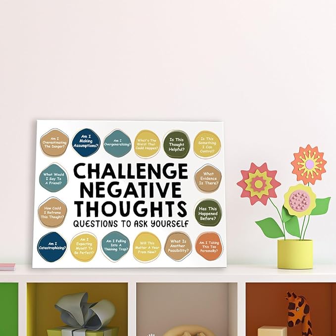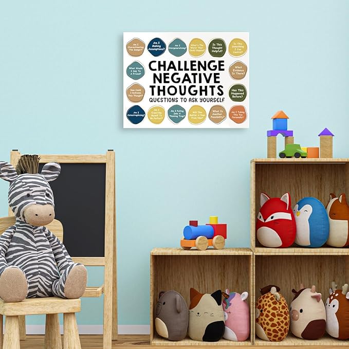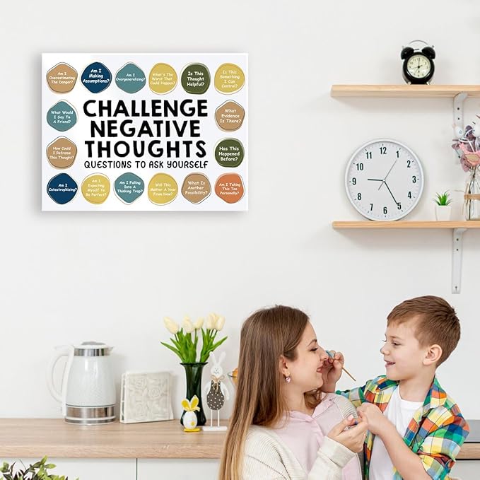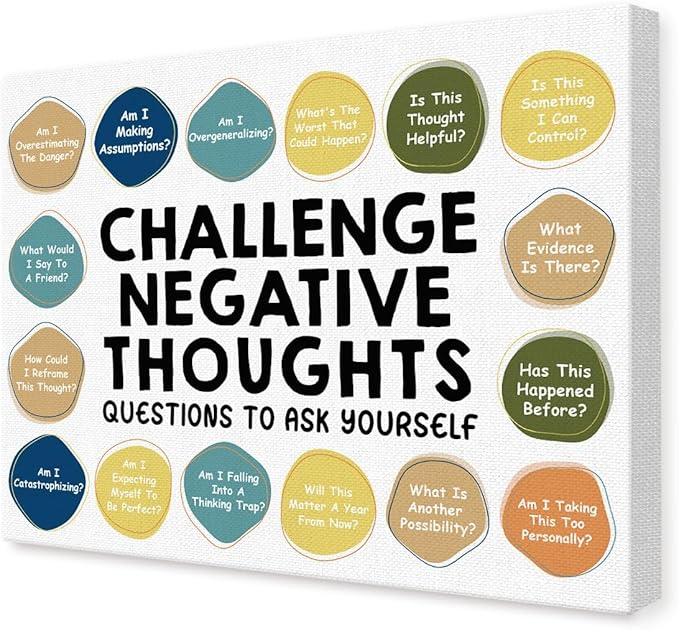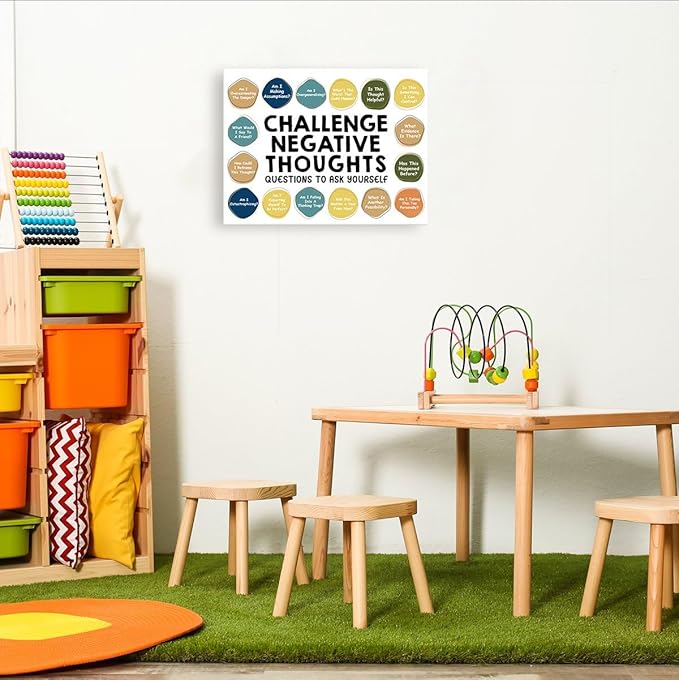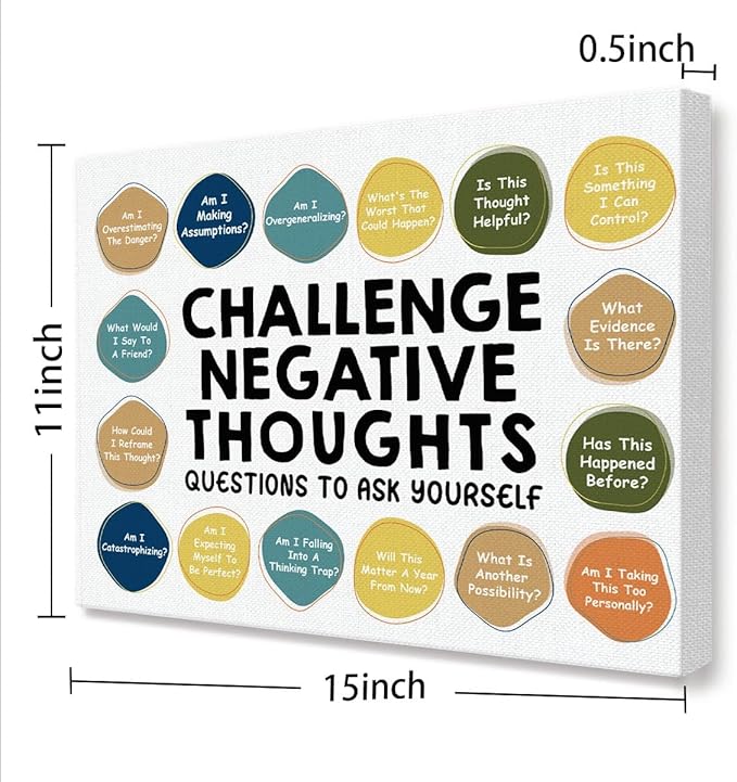 Mental Health Wall Decor,Challenge Negative Thoughts Wall Art,Therapy Office Wall Decor,Inspirational Canvas Wall Art for Classroom Psychologist Office Home