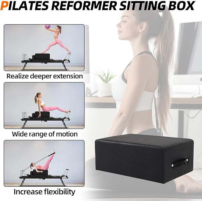 FAHKNS Portable Pilates Reformer Sitting Box, Non-Slip Pilates Sit Boxs for Home Workout, Pilates Exercise Accessories for Pilates Refomer/Board, Posture Correction