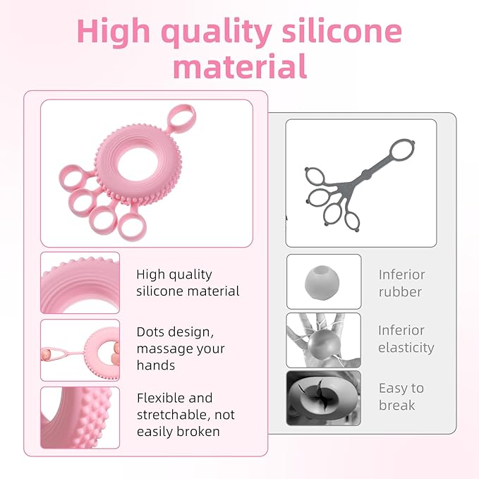 • 【Durable silicone】The Finger Exerciser is made of superior-quality silicone, which is non-toxic, odorless, high elasticity, and durable for long-term use. Soft and elastic, comfortable to the touch.