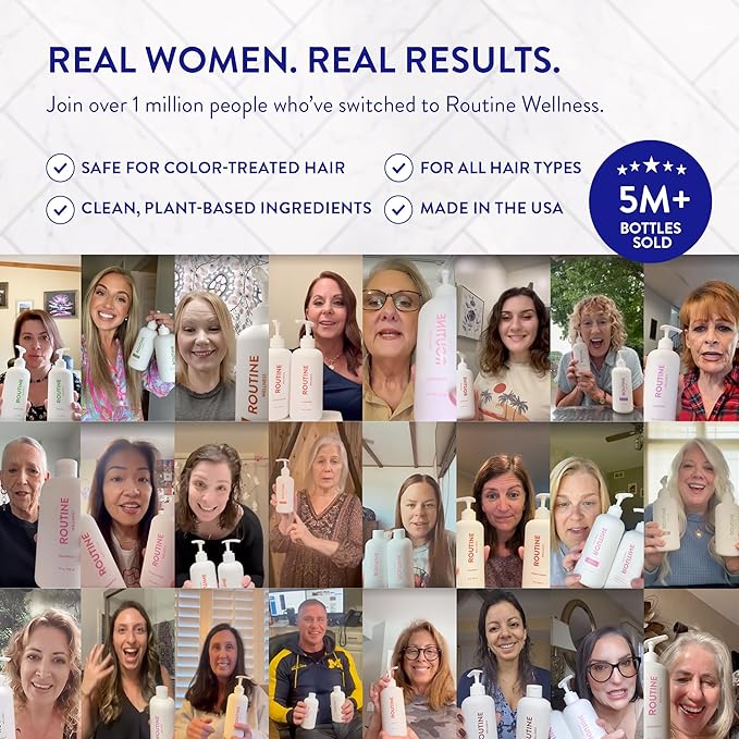 • CLINICALLY TESTED FOR THINNING HAIR - Looking for a solution for thinning hair or hair loss? Our Routine Wellness Shampoo & Conditioner for women are clinically shown to strengthen hair and visibly reduce hair thinning caused by breakage. Powered by pea peptides, black seed oil, and biotin, they help support healthier, fuller-looking hair from root to tip.