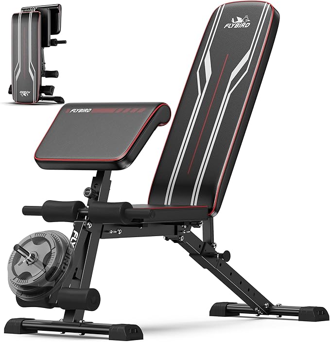FLYBIRD 3 in 1 Adjustable Weight Bench with Leg Extension & Preacher Curl Pad for Full Body Workout, 800LBS Foldable Exercise Bench at Home Gym, Portable Lifting Incline Decline Flat Strength Training